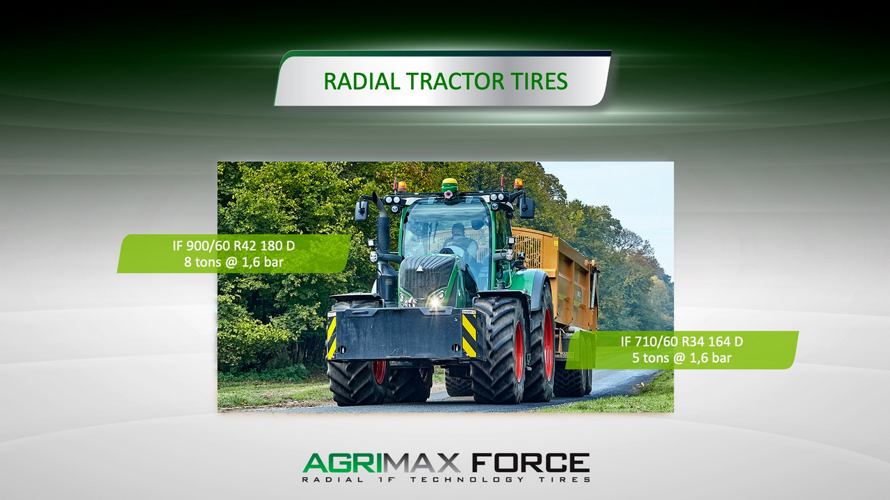 Наконец, технология IF придает шине универсальность и структурную целостность даже при высоких нагрузках благодаря усиленному каркасу AGRIMAX FORCE, который способствует максимальной производительности, эффективности и, что также немаловажно, общему комфорту водителя.